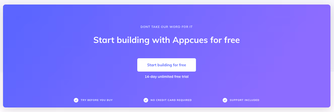And since potential Appcues customers might have found themselves on this page while researching whether the tool easily integrates with their current tech, it ends in a CTA for a free trial:
