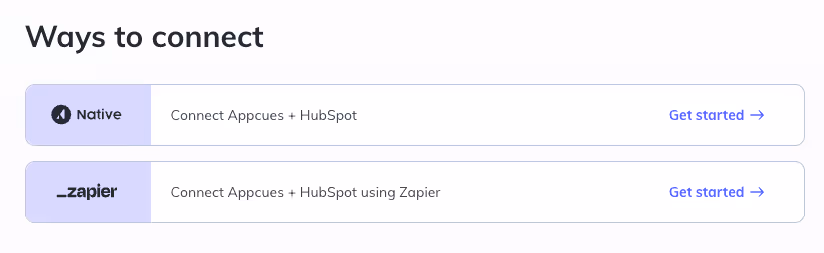 This page includes links to pages that walk you through the different ways to connect Appcues and HubSpot: