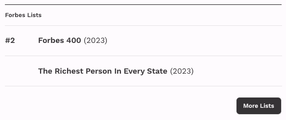 These Profile pages are packed with internal links to other Forbes content, such as its List pages: