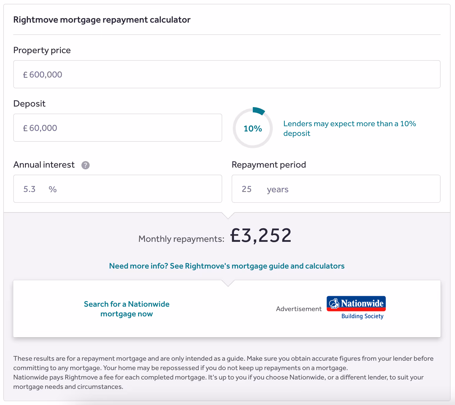 Each property page features a mortgage calculator that visitors can use to see whether the property is within their price range (and the calculator is monetized through an affiliate link to a mortgage provider):